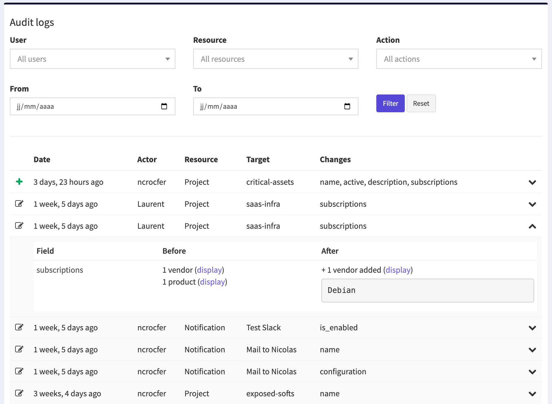 In many organizations, vulnerability management involves multiple users interacting with projects, notifications, subscriptions, views, or API tokens. Without proper traceability, it can be difficult to understand: